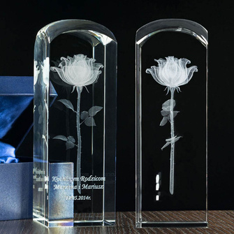 Róża 3D - podziękowania dla Rodziców wygrawerowane w krysztale. Komplet 2 szt.