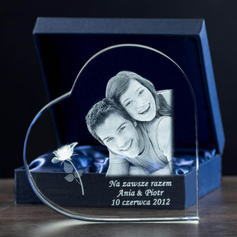 Prezent dla rocznicę - zdjęcie 3D w szklanym sercu