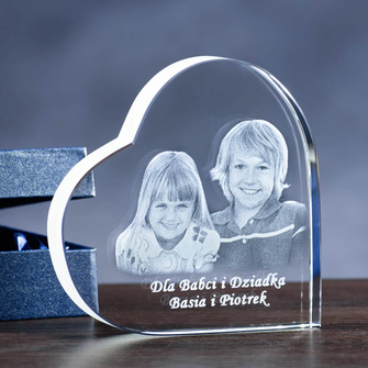 Prezent DLA DZIADKÓW - kryształowe serce ze zdjęciem