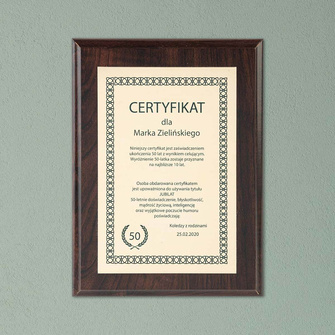 Dyplom Certyfikat Urodzinowy - 18 20 25 30 50 urodziny. Rozmiar 152x203 mm
