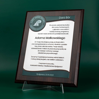 Prezent dla Leśnika 203x254 mm - grawerowany dyplom Nadleśnictwo