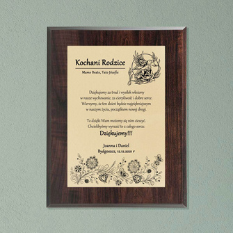 Ślubne PODZIĘKOWANIA DLA RODZICÓW - dyplom 228x305 mm