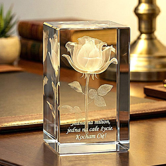 Róża 3D wtopiona laserowo w kryształ oraz indywidualna dedykacja