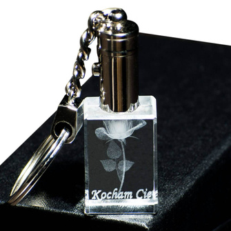 Kryształowy brelok z grawerem RÓŻA 3D dla dziewczyny