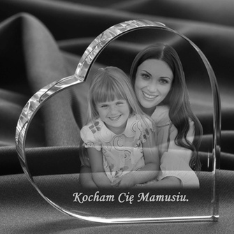 Fotografia w kryształowym sercu dla Mamy na Dzień Matki, urodziny czy imieniny