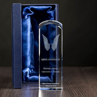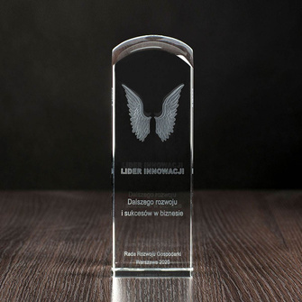 Trójwymiarowe skrzydła w krysztale + logo + dedykacja