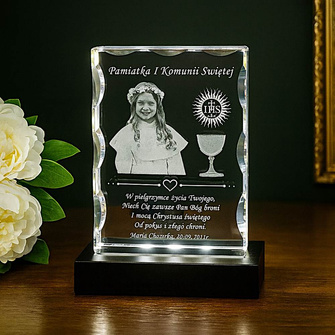 Zdjęcie 3D w krysztale z dedykacją - Pamiątka I Komunii Świętej