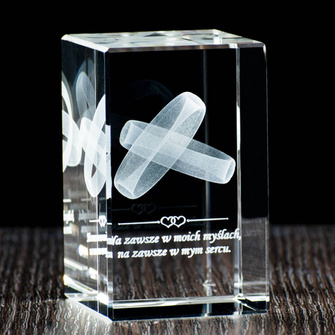 Statuetka 3D z grawerem obrączek na podstawce podświetlającej