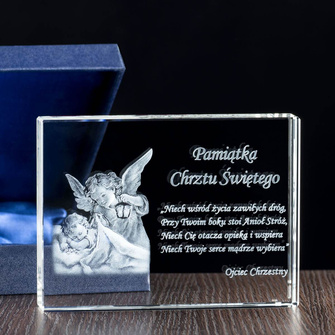 Pamiątka Chrztu Św. z indywidualną dedykacją - fotokryształ 3D