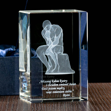 Grawerowana postać Myśliciela 3D - kryształowa statuetka DLA PRAWNIKA
