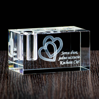 Prezent dla ukochanej - stojak na długopis SPLECIONE SERCA grawer w szkle