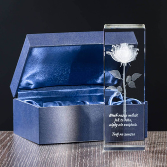 Piękna Róża 3D grawerowana w szkle dla NIEJ