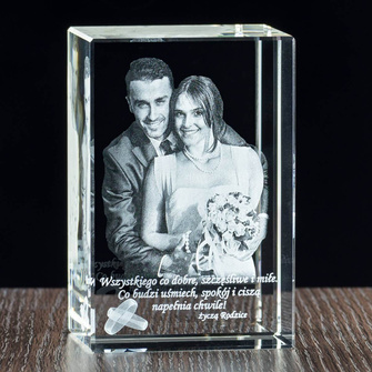 Pamiątka ślubna – zdjęcie 2D w krysztale Płyta płaska 100×150×30 mm