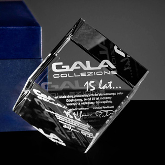 Statuetka na jubileusz firmy - sześcian ścięty - etui w zestawie