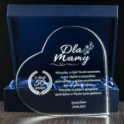 Kryształowa statuetka w kształcie serca z dedykacją dla niej NA URODZINY