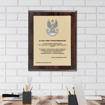 Dyplom grawerowany dla wojska 203x254 mm - służby mundurowe PODZIĘKOWANIA