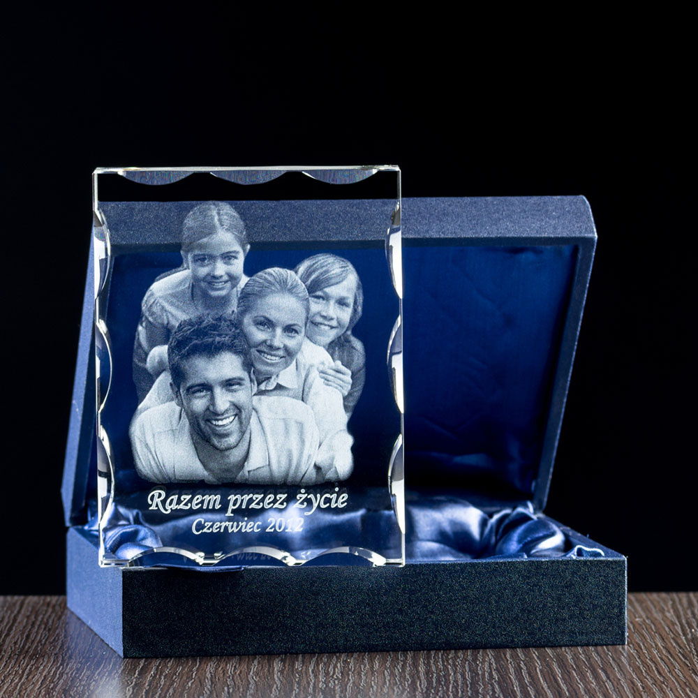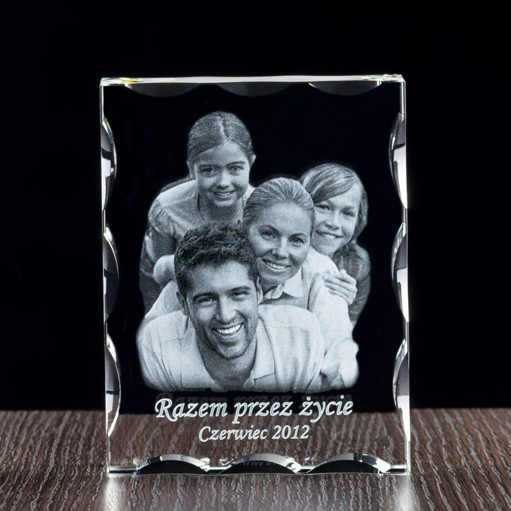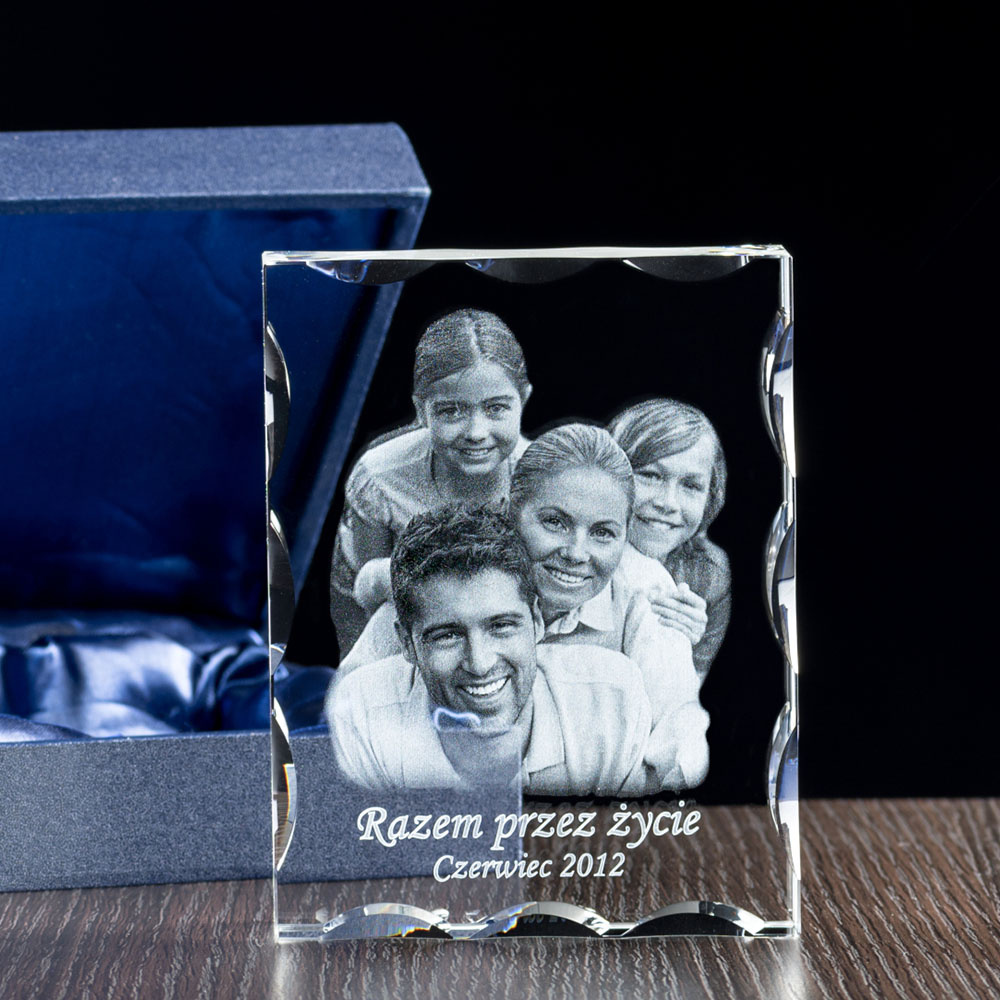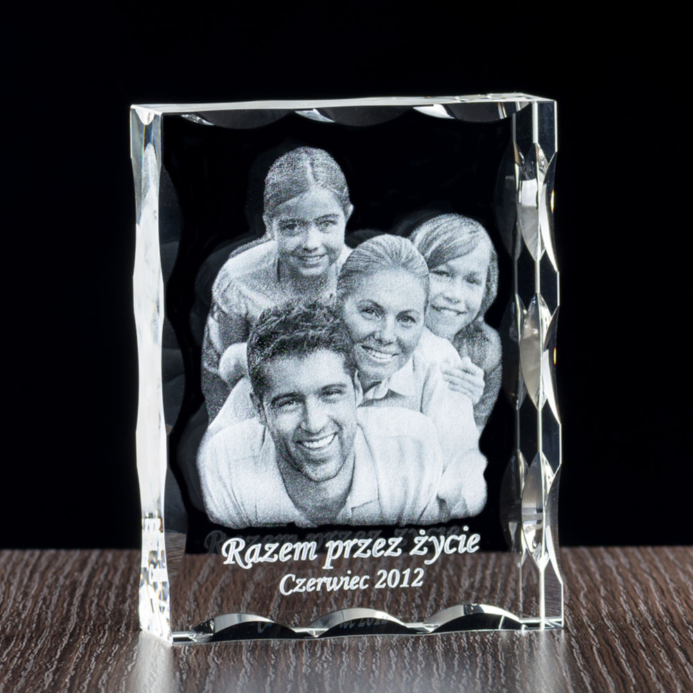 - Elegancki fotokryształ 2D z grawerem zdjęcia rodzinnego. Wysokiej jakości szkło optyczne z oszlifowanymi krawędziami. Idealny prezent na rocznicę, święta lub wyjątkową pamiątkę.
