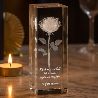 Szklana statuetka 3D z różą i dedykacją – prezent na walentynki lub rocznicę